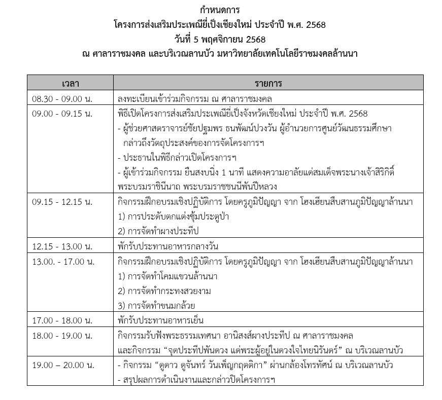 ผู้รับผิดชอบ : ศูนย์วัฒนธรรมศึกษา มทร.ล้านนา