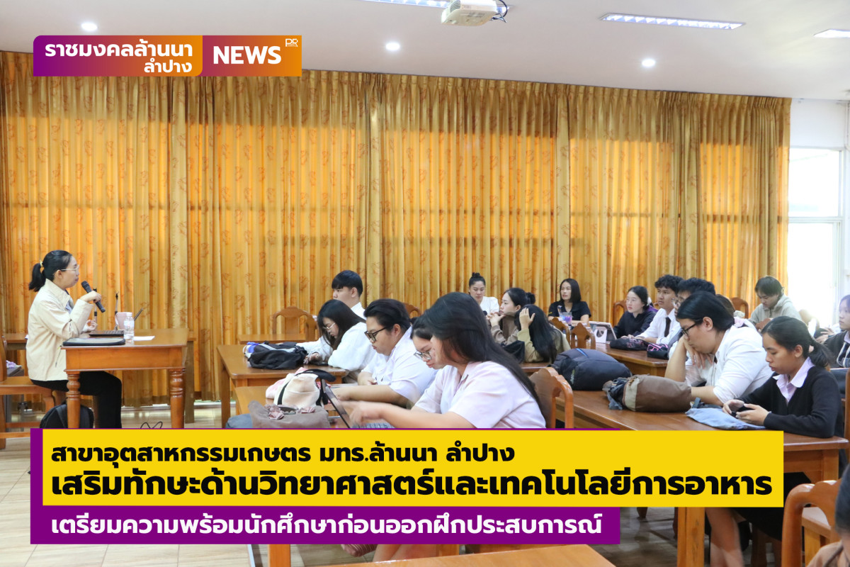 วันที่ 30-31 ตุลาคม 2568 ที่อาคาร Coffee Go Green หลักสูตรวิทยาศาสตร์และเทคโนโลยีการอาหาร คณะวิทยาศาสตร์และเทคโนโลยีการเกษตร มหาวิทยาลัยเทคโนโลยีราชมงคลล้านนา ลำปาง (มทร.ล้านนา ลำปาง) จัดโครงการอบรมเชิงปฏิบัติการหัวข้อ “ข้อกำหนดหลักการปฏิบัติสุขลักษณะที่ดี (GHP Codex) ระบบการวิเคราะห์อันตรายและจุดวิกฤติที่ต้องควบคุม (HACCP) และมาตรฐานอาหารฮาลาล (Halal) ในอุตสาหกรรมอาหาร” เพื่อเตรียมความพร้อมและพัฒนาความรู้เชิงวิชาชีพให้กับนักศึกษาก่อนออกฝึกประสบการณ์ในสถานประกอบการ