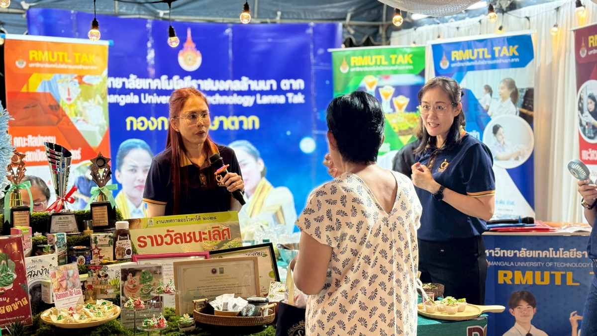 เมื่อวันที่ 29 ธันวาคม 2568 สาขาอุตสาหกรรมเกษตร คณะวิทยาศาสตร์และเทคโนโลยีการเกษตร มหาวิทยาลัยเทคโนโลยีราชมงคลล้านนา ตาก ได้เข้าร่วมแสดงผลงานทางวิชาการและวิชาชีพ ภายในงานตากสินมหาราชานุสรณ์ ประจำปี 2568–2569 โดยจัดกิจกรรม “อาลัวคริสต์มาส” เพื่อส่งเสริมและต่อยอด soft power ด้านอาหารไทยและขนมไทยผ่านความคิดสร้างสรรค์ด้านการตกแต่งอาหารและงาน food stylist กิจกรรมดังกล่าวได้นำขนมไทยโบราณอย่าง “อาลัว” ซึ่งมีเอกลักษณ์โดดเด่นด้านรสชาติ เนื้อสัมผัส และความประณีต มาต่อยอดเชิงสร้างสรรค์ด้วยการออกแบบรูปทรงให้สอดคล้องกับเทศกาลคริสต์มาส อันเป็นการเพิ่มมูลค่าให้กับขนมไทย พร้อมทั้งสะท้อนศักยภาพของ soft power อาหารไทยและขนมไทย ที่สามารถประยุกต์ให้เข้ากับบริบทสากลได้อย่างกลมกลืนและยังคงอัตลักษณ์ความเป็นไทยไว้อย่างครบถ้วน